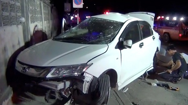 เก๋งฮอนด้า ซิตี้ ซิ่งฝ่าไฟแดง ชนพ่วงกลางแยกสนั่น พุ่งอัดกำแพง เจ็บ 3 สาหัส คาซาก 1 คน