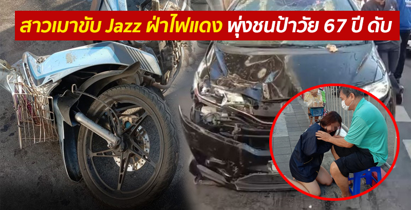 สาวเมาขับ Honda Jazz ฝ่าไฟแดง พุ่งชนป้าวัย 67 ปี ดับ