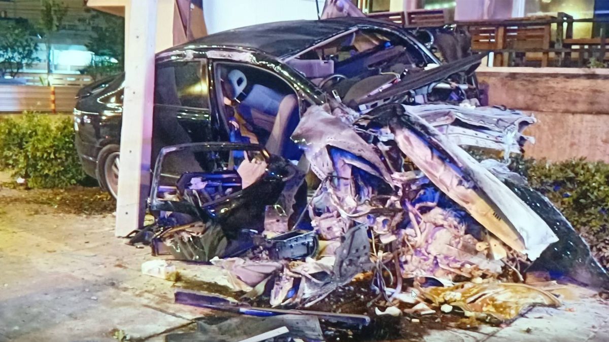 สอบถามผู้เห็นเหตุการณ์ กล่าวว่า รถเก๋งคันดังกล่าวขับมาด้วยความเร็วสูง ก่อนเจอเนินสะดุด ทำให้รถเสียหลักเข้าพุ่งขึ้นฟุตปาธ ก่อนชนอัดกับเสาไฟฟ้าข้างทางและผนังปูนของโรงแรมอย่างแรง จนสภาพรถพังยับไปทั้งคัน