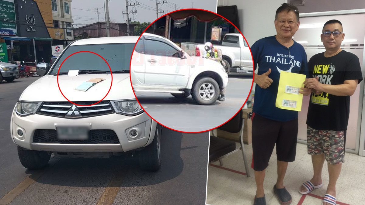 หนุ่มขับกระบะ Mitsubishi Triton โมโหตำรวจออกใบสั่ง เหมาลอตเตอรี่ยกแผง เฮลั่นถูกรางวัล 12 ล้าน