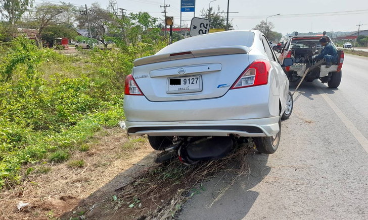 ผอ.โรงเรียน ขับเก๋ง Nissan Almera ชนจยย.อย่างแรง คนขี่ตายคาที่