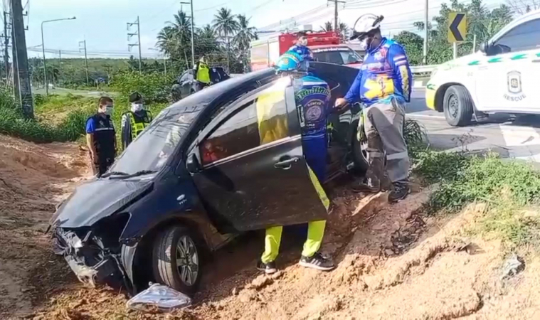 เมื่อไปถึงพบรถเก๋งยี่ห้อโตโยต้า วีออส สีดำ หมายเลขทะเบียน กษ 6042 สงขลา เฉี่ยวชนกับเสาไฟฟ้าริมทางและหักปักอยู่ในคูริมถนนไปชนกับกำแพงดินด้านหน้าเสียหายและด้านข้างด้านคนขับมีรอยครูดกับเสาไฟฟ้าและมีผู้บาดเจ็บเป็นผู้หญิงอยู่ภายในรถ 1 คน