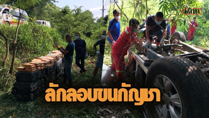 หนุ่มซิ่งกระบะ Mitsubishi Triton ขนกัญชา 650 กก.พลิกคว่ำ เสียชีวิตภายในรถ
