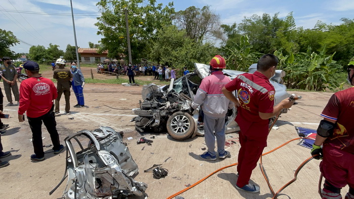 เมื่อเวลาประมาณ 11.30 น. วันนี้ (20 พ.ค.) พ.ต.ท.อัมพร ปลัดพรมมา สารวัตรสอบสวน สภ.ท่าบ่อ จ.หนองคาย ได้รับแจ้งอุบัติเหตุรถชนกันมีผู้เสียชีวิตติดภายในรถ บริเวณสี่แยกบ้านหนองนาง ต.หนองนาง จึงไปตรวจสอบที่เกิดเหตุพร้อมประสานหน่วยกู้ภัยประจักษ์หนองคาย และกู้ภัยชบา 191 นำเครื่องตัดถ่างไปช่วยเหลือ