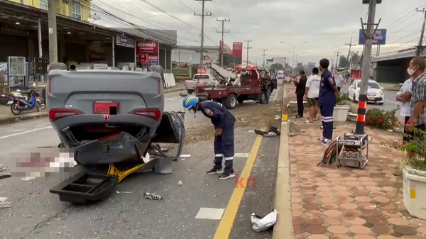 ก่อนที่รถเก๋งจะพลิกคว่ำหลายตลบและไถลไปกว่า 100 เมตร จนทับร่าง นายมาโนช อายุ 31 ปี คนขับรถคันดังกล่าวที่กระเด็นหลุดออกจากตัวรถจนเสียชีวิต โดยเหตุเกิดเมื่อช่วงเช้าที่ผ่านมาบริเวณหน้าสถานีบริการน้ำมัน ปตท.ศาลาแดง ถนนโพธิ์พระยา-ท่าเรือ หมู่ที่ 4 ต.ศาลาแดง อ.เมือง จ.อ่างทอง
