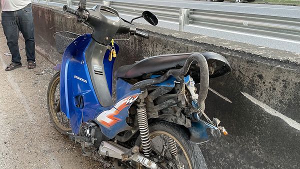 หนุ่มเคราะห์ร้ายขี่ Honda Wave เหินเนินพลิกคว่ำ รถตามหลังทับซ้ำดับคาถนน