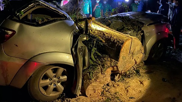 ผู้เสียชีวิตทั้งสามถูกลำต้นของต้นไม้ใหญ่ทับกลางลำตัวอัดติดในซากรถยนต์ เจ้าหน้าที่ต้องใช้เครื่องมือเร่งตัดกิ่งต้นไม้ แต่ก็เป็นไปด้วยความยากลำบาก เนื่องจากพื้นที่ไม่ปลอดภัยและอาจจะเกิดต้นไม้ต้นอื่นล้มทับซ้ำได้