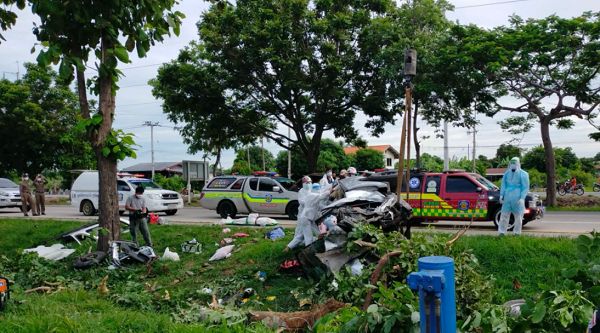 ครอบครัวคนพะเยาติดโควิดยกบ้าน ขับกระบะกลับไปรักษาที่บ้านเกิด แล้ววูบหลับในเสียหลักชนต้นไม้ริมถนนสาย 340 ชัยนาท-สุพรรณบุรี ที่ อ.ศรีประจันต์ ตาย 2 เจ็บ 4 เจ้าอาวาสวัดดังรับเป็นเจ้าภาพเผาศพให้