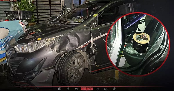 หนุ่มแทง "แฟน" ดับ ขับเก๋ง Toyota Yaris หนี พร้อมจุดเตาหวัง รมควัน เกิดรถชนจยย. Honda Wave พ่วงข้าง